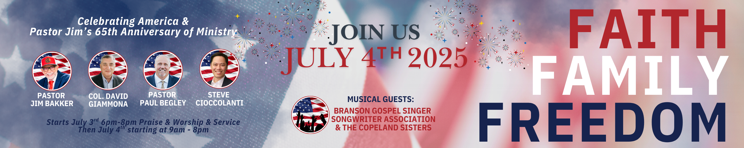 Faith Family Freedom: Join us July 4th 2025 Celebrating America & Pastor Jim's 65yh Anniversary of Ministry